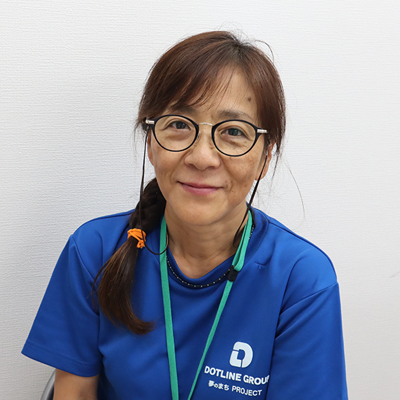 もともと介護の介護の世界をもうやめようと思っていました。でもやっぱり始めよう!と思った時に「夢のまちケア」という名前がきになって応募してみました。自分がこの仕事に付き始めた時に誰にも教えてもらえない、どうしていいかわからないという思いをしたこともあり、介護の仕事を始めた方にそのような思いをさせたくないと思っていました。ドットラインはホームページを見て、若い人達が真剣に向き合う事が出来る・自分の経験を介護業界を担っていく方に伝えられる会社だと思い入社を決めました。またいつかは老いていく自分たちを見つめる為にも良い経験を学べると思いました。